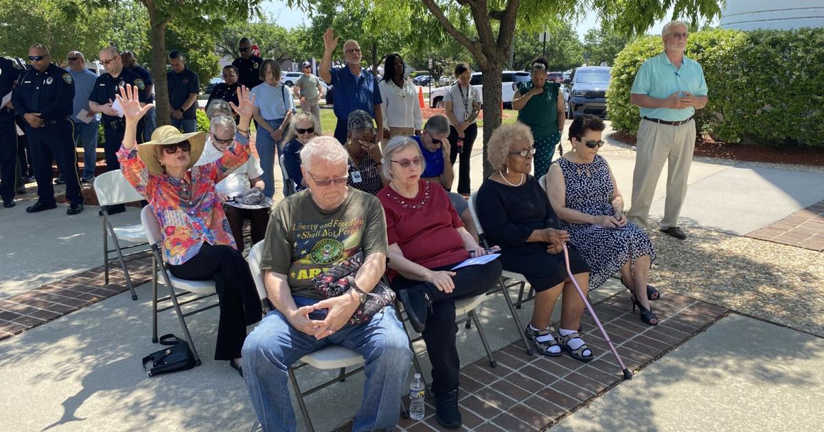 The ceremony held Thursday afternoon outside in the courtyard at Rocky Mount City Hall was graced with cloudless skies and temperatures in the mid-80s. Attendees at the event sought out the shade provided by the trees that ring the courtyard.